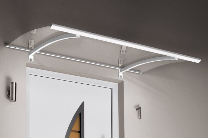 Niemiecki standard dotyczący osłony drzwi. Daszek nad drzwiami wejściowymi Guttavordach LED Technik jest wykonany z aluminiowej ramy malowanej proszkowo. Ponadczasowo elegancki design podkreśla specjalny akcent twojego wejścia do domu.