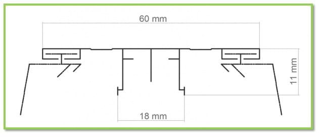 Optymalny rozstaw osiowy krokwi to szerokość płyty powiększona o wymiar poprzecznego przekroju rdzenia profilu. Dla wszystkich oferowanych przez nas profili rozstaw osiowy krokwi należy powiększyć o 28 mm jak na rysunku poniżej.